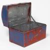 This nifty little metal box is a tuckerbox and travel bag all in one. The main compartment was for storing food for meals. Inside the lid is another compartment for storing pyjamas, towel and the rule book. This box was used by steam train engine drivers and firemen and was known as the ‘away from home’.
