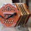 This concertina was once played by the first European girl born in the Swan River Colony. Sophia Ellery, nee Dent, was born on the beach in Fremantle in 1829 after her mother went into labour. The ship that had transported their family from England floundered as it reached shore, forcing Sophia’s father to carry her mother through the waves to the beach where Sophia was born. She went on to marry and have four children but her first husband died after which she remarried and bore another four children. She must have found solace in music, having also treasured a pedal organ which is now on show at the Irwin and Districts Historic Museum. She was buried in Dongara Cemetery as Sophia Mitchell.