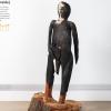 Curtis Taylor is an internationally recognised Martu artist who comfortably walks in two worlds. Using a diverse range of media, from painting to animated films, he interprets his culture and life in a contemporary world. He is respected by his elders who foster his talents. In this sculpture he interprets a well-known tale. Curtis has carved the Jurrkurpa story of the man and two snakes into this old, hollow tree trunk, scorched the exterior and painted parts of it with traditional ochres.